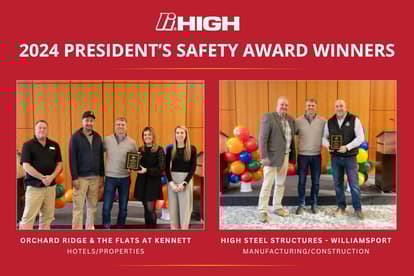The High Executive Committee selected three Safety Circle Award recipients for President’s Safety Awards: High Steel Structures – Williamsport, an affiliate of High Industries Inc., received the award in the Manufacturing/Construction category, and the Hotels/Properties award was presented to Orchard Ridge, Pottstown, PA and The Flats at Kennett, Kennett Square, PA.